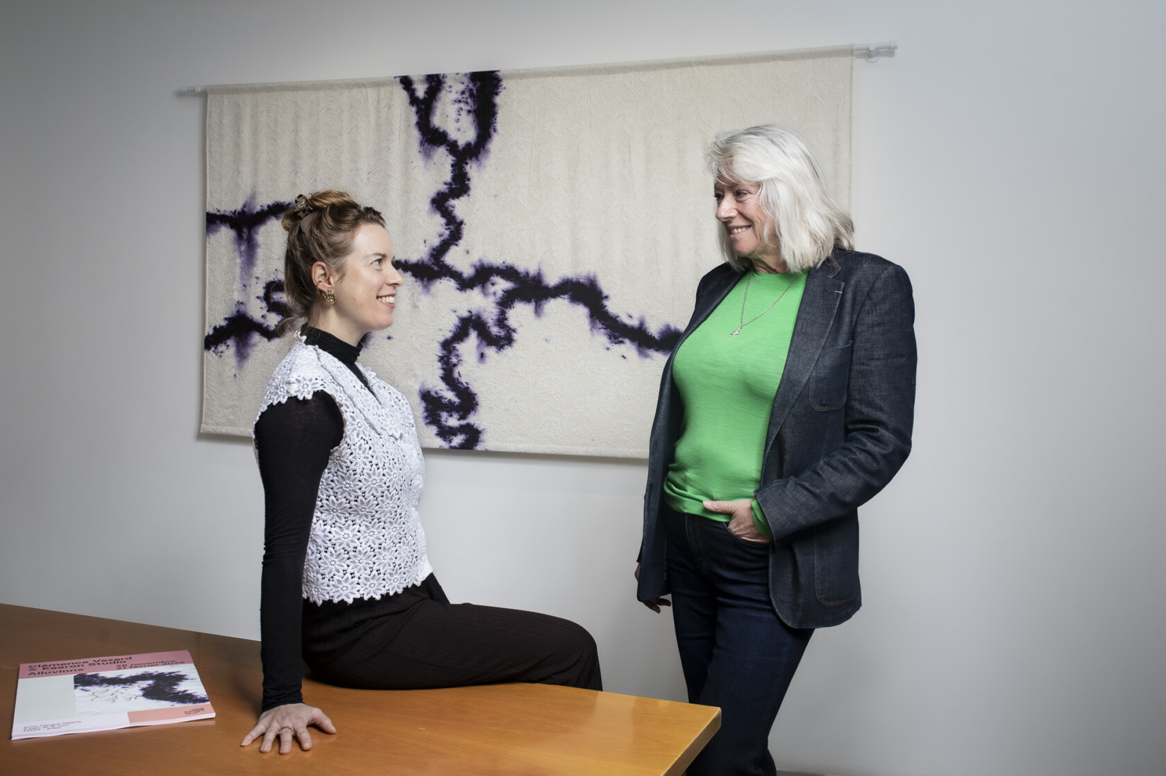 « San Lorenzo » and « La Chulita, » two works presented as wall hangings, signal a shift in the project: moving beyond repair to allowing the river to exist without human intervention. Color spills across the surface like flooding water, expressing the regenerative capacity of living systems when left unconstrained.